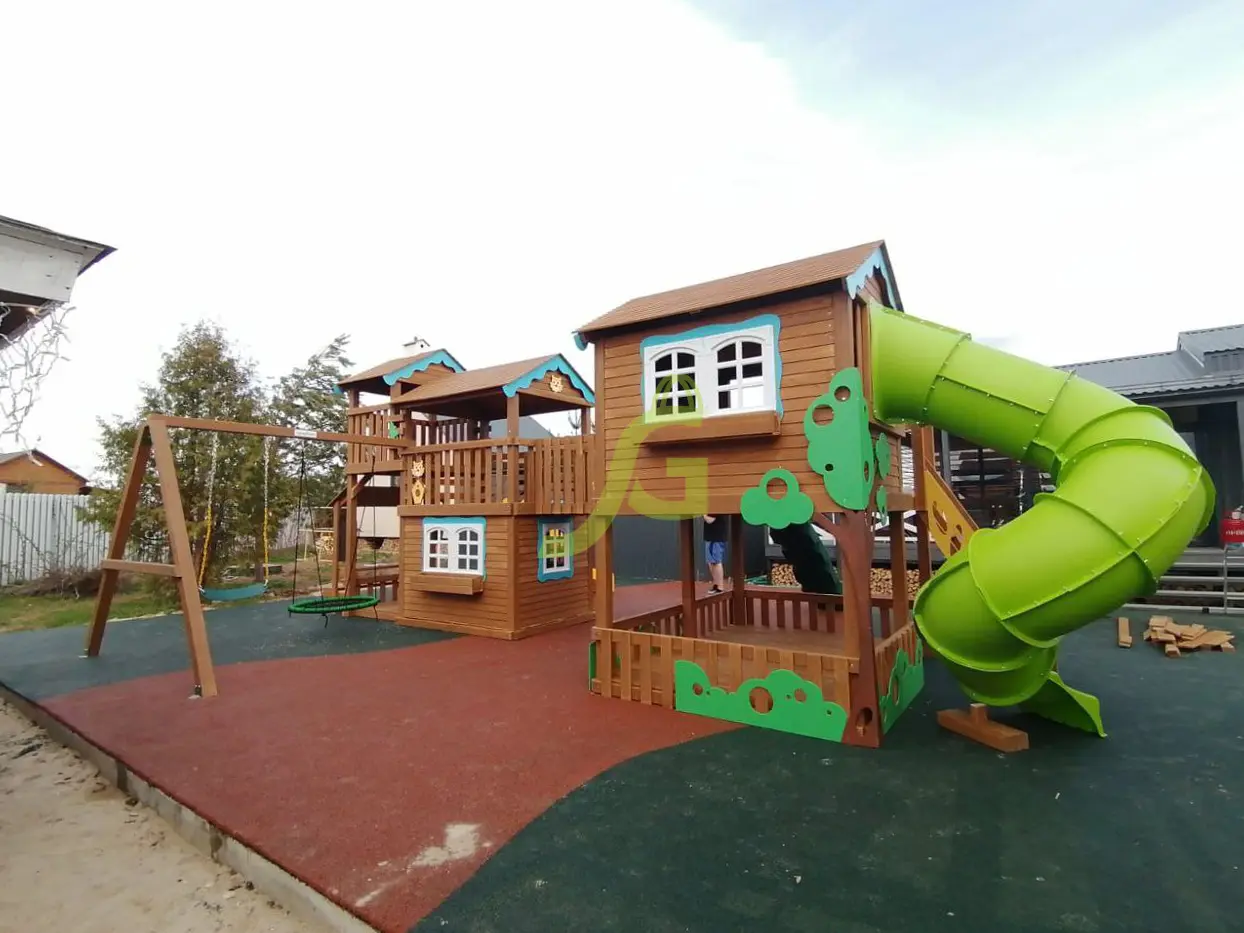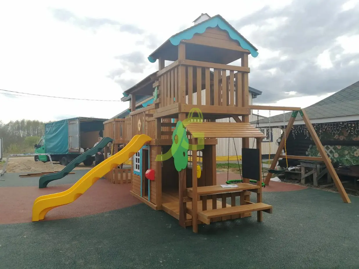 - - клеенный брус и обработанное специальными составами дерево устойчиво к внешним воздействиям и не боится влаги, поэтому комплекс будет радовать взрослых и детей безупречным внешним видом ни один сезон;