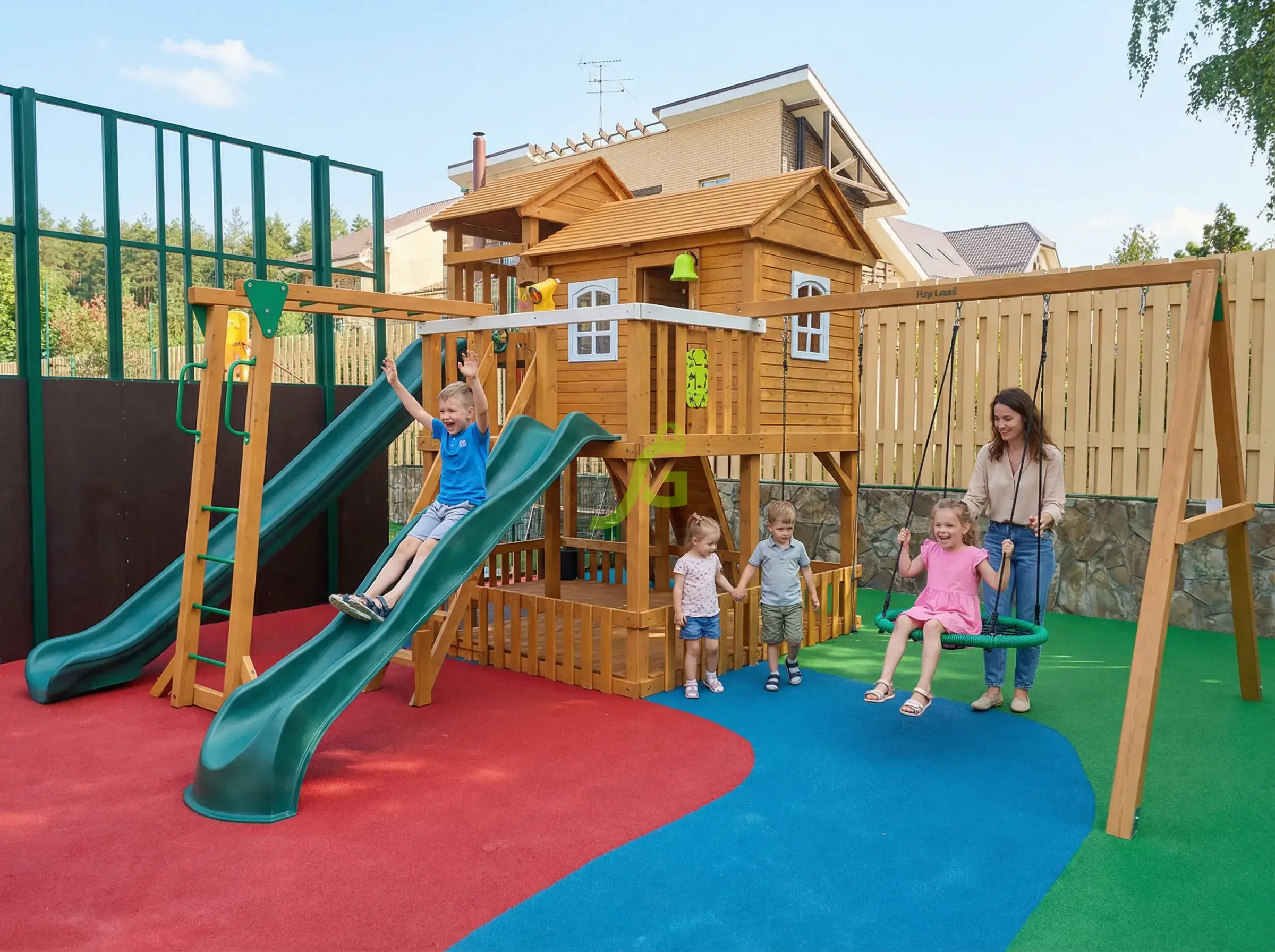 - - конструкция двухуровневой башни с домиком из клееного бруса 100х100 мм;