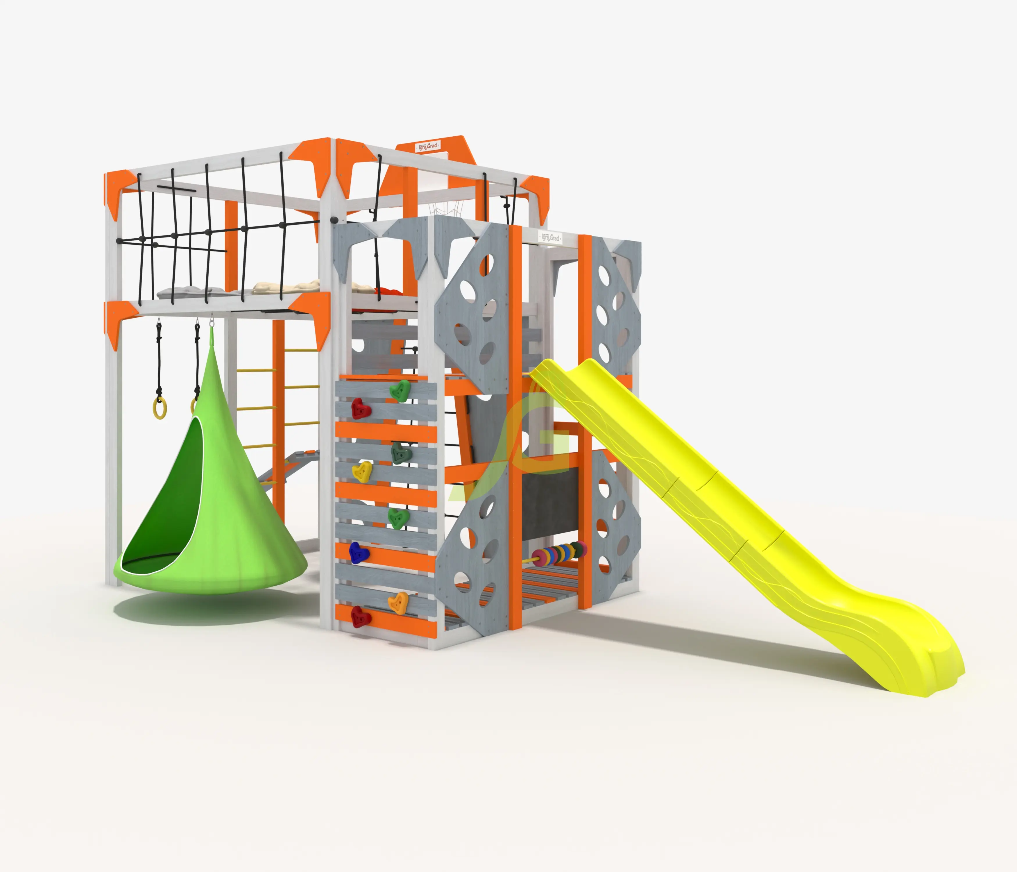 - Силовая скамья с двумя вариантами установки: уникальный элемент, который можно настроить под разные упражнения, помогает детям укреплять мышцы и развивать выносливость