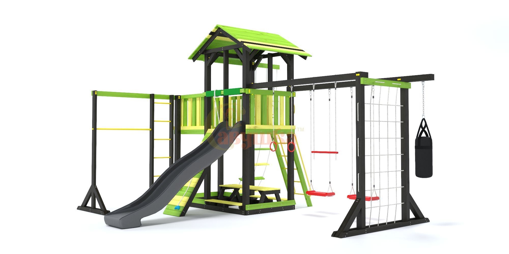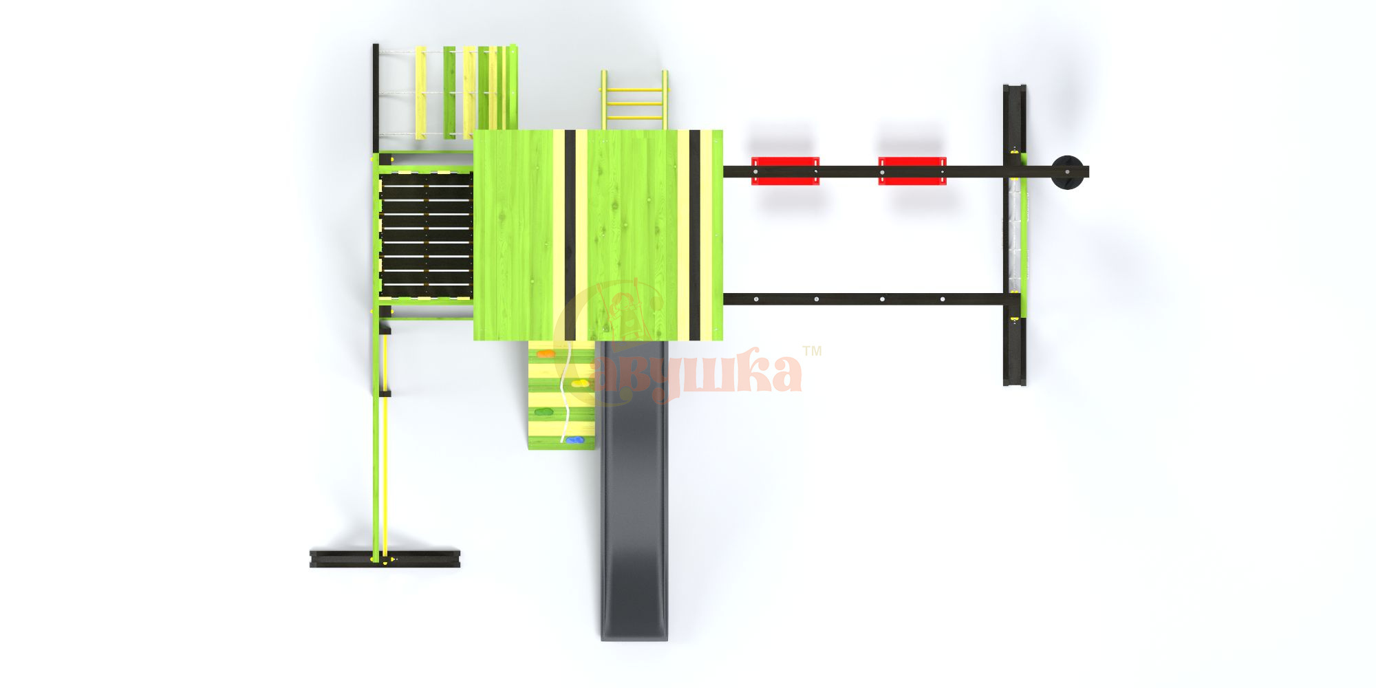 • Дерево обработано лакокрасочным покрытием с разрешающим сертификатом для покрытия детских игровых площадок