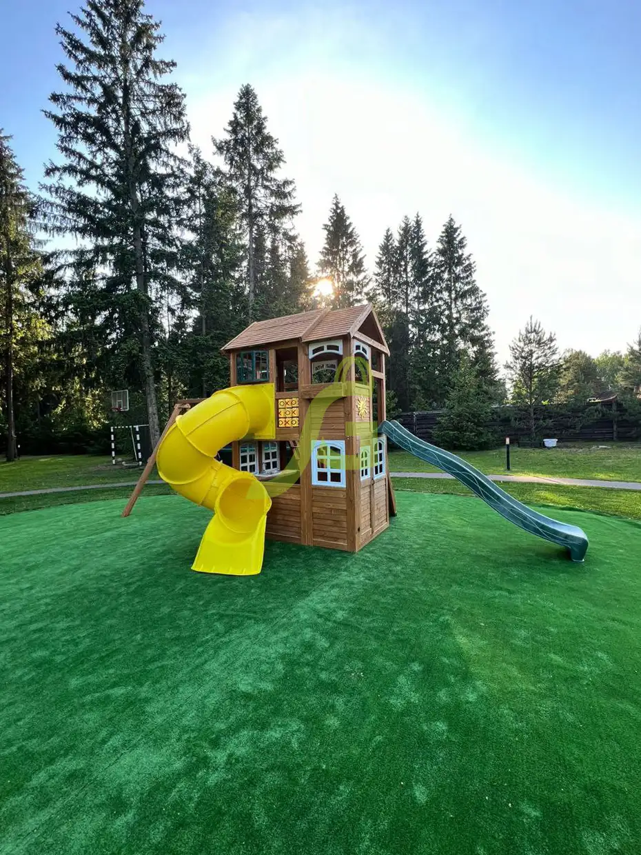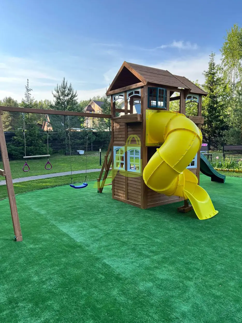 - - Закрытый двухуровневый игровой домик с дверью, деревянной крышей;