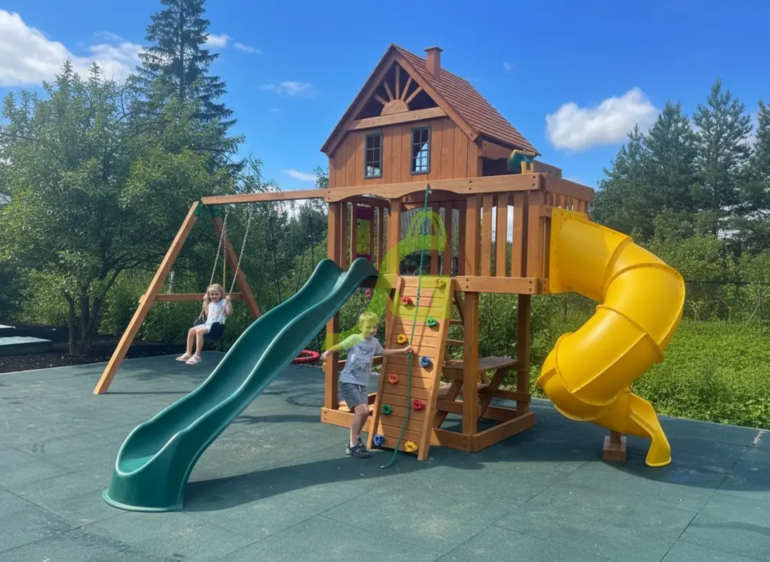Есть ли польза?Деревянная детская площадка – настоящая возможность сделать детей сильнее, выносливее, целеустремлённее. Играя на улице, дети получают необходимый для организма витамин Д. Ребёнок может пригласить приятелей и вместе придумать увлекательную игру, развивая социальную адаптацию в обществе. Родители могут не беспокоиться за ребёнка, ведь детская площадка выполнена из надёжных материалов, имеет усиленную конструкцию и находится возле окон дома.