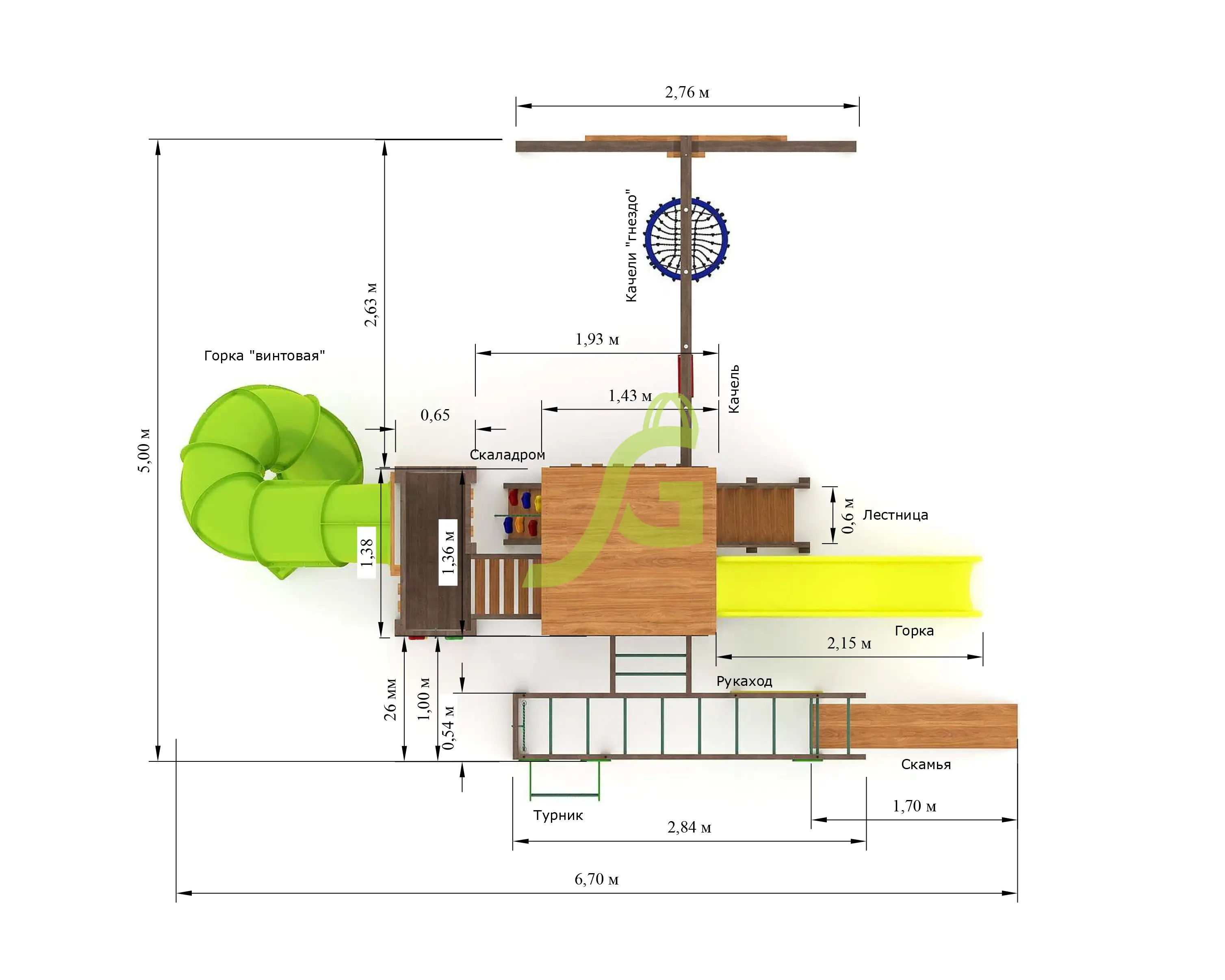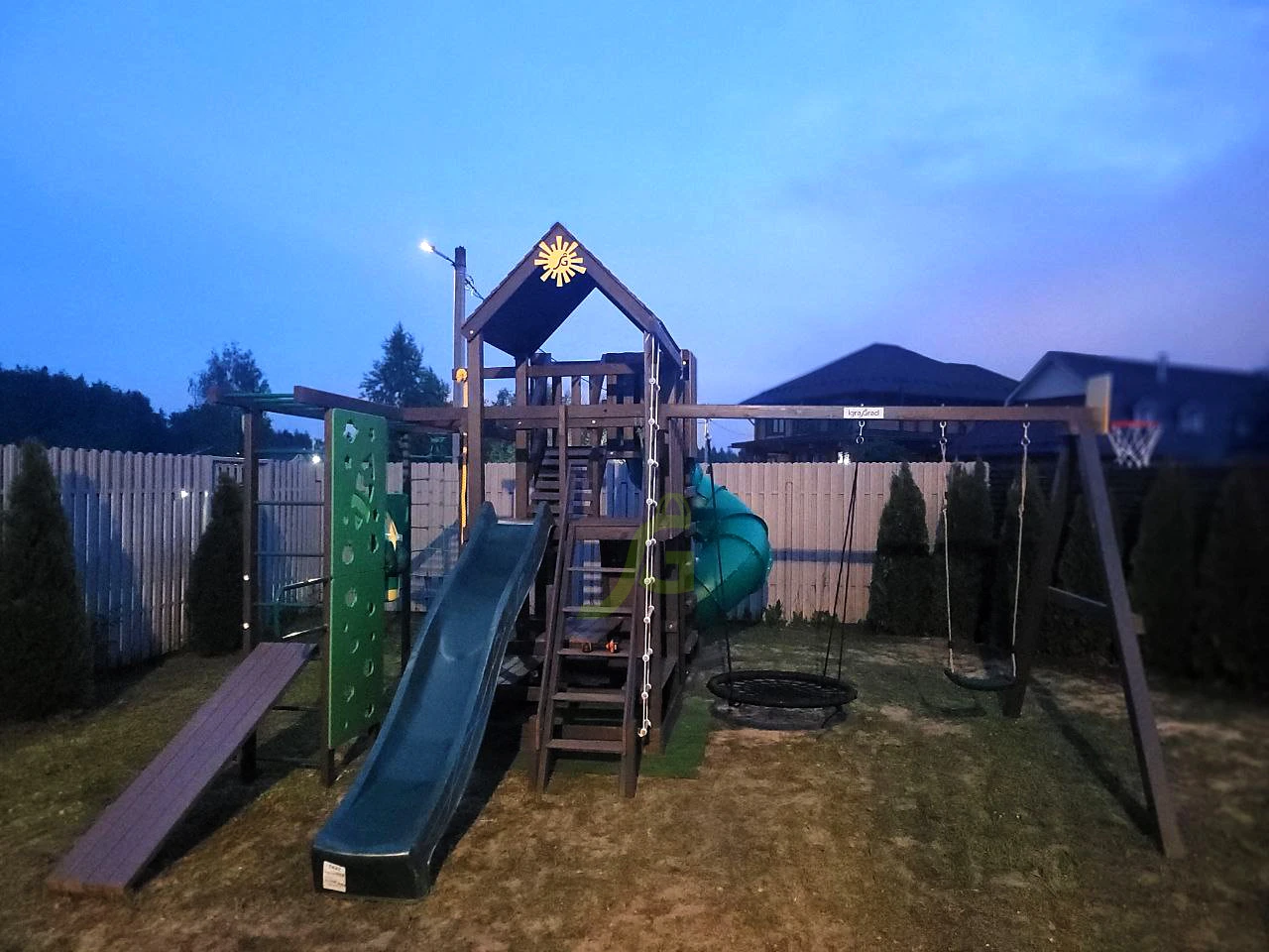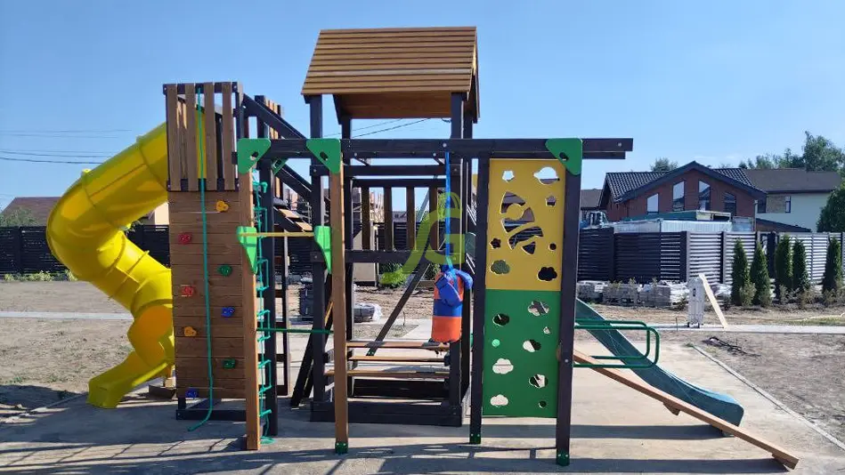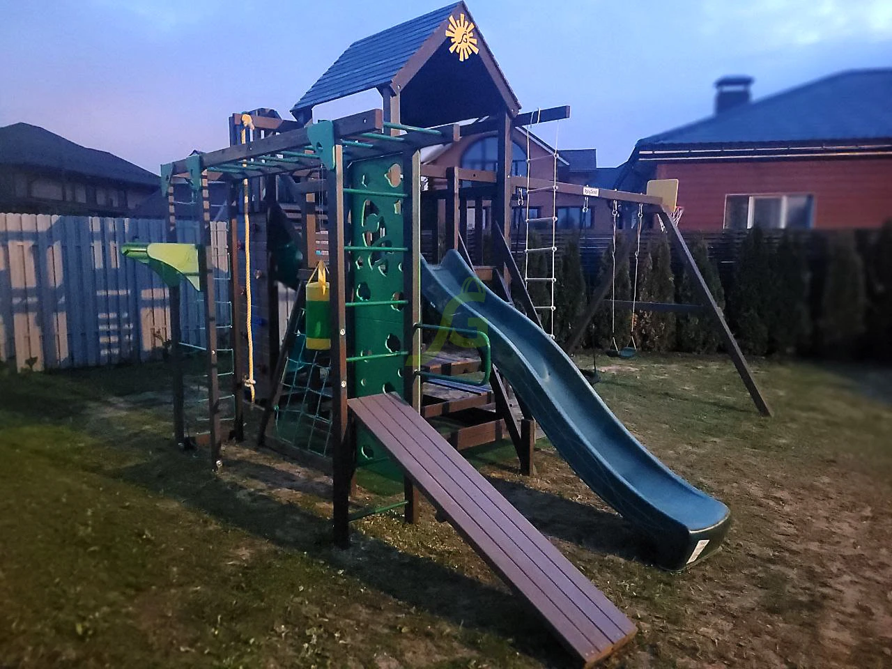 Обращаем Ваше внимание, что цвет установленной детской площадки может отличаться от представленных изображений на сайте. Специфика окраски нетоксичными пропитками допускает отклонения в цветовой гамме отгружаемых изделий вследствие различного цвета натурального природного сырья и естественных компонентов, используемых для производства площадок.