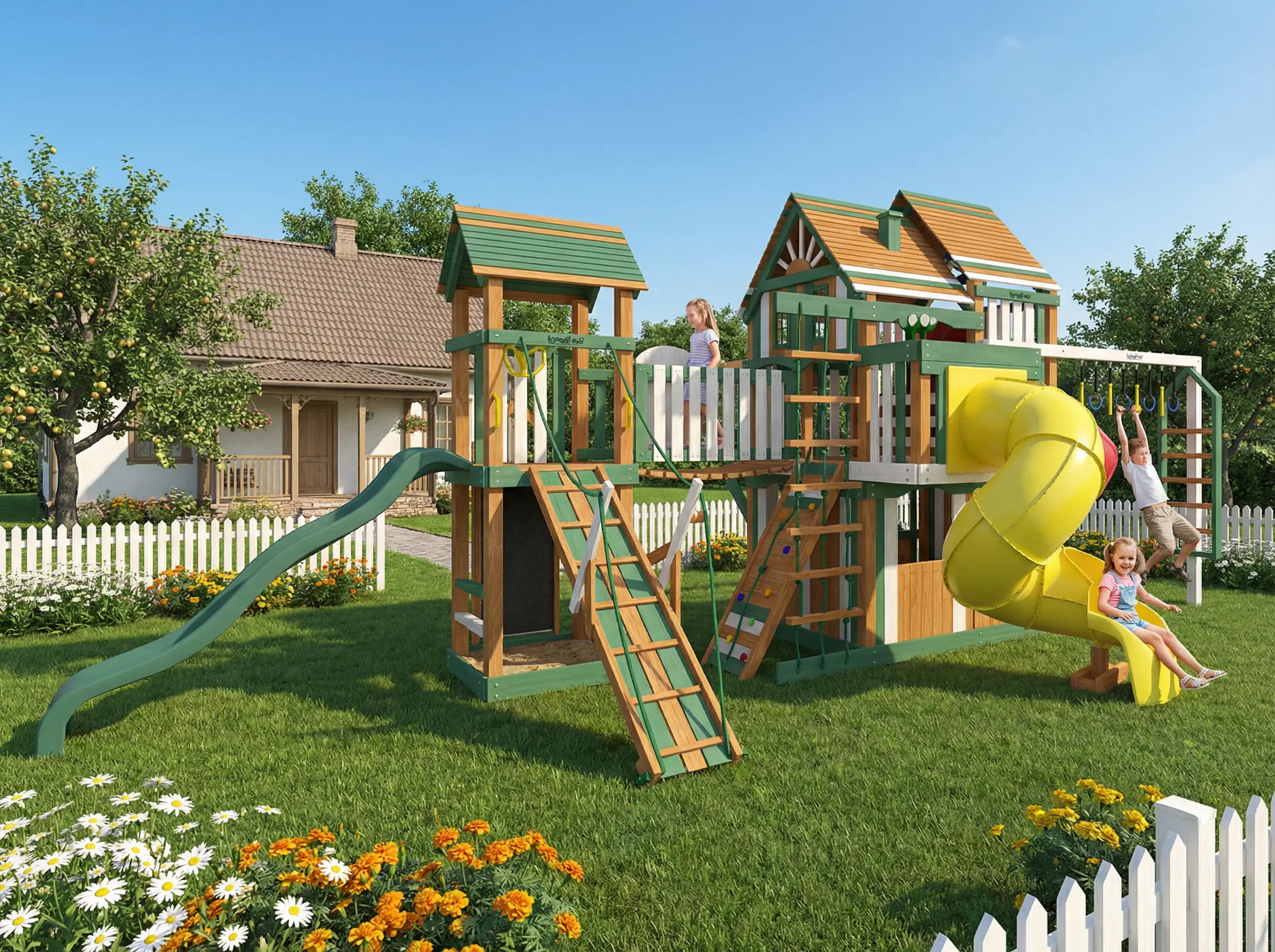 Обработка Острые края деревянных элементов закруглены, что помогает детям избежать травм во время активных игр
