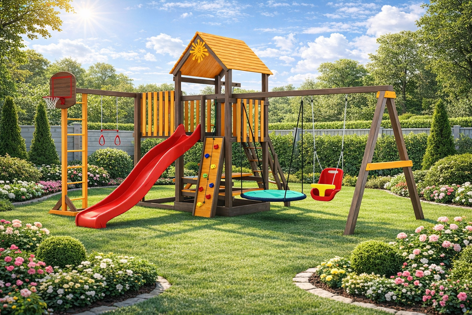 Обращаем Ваше внимание, что цвет установленной детской площадки может отличаться от представленных изображений на сайте. Специфика окраски нетоксичными пропитками допускает отклонения в цветовой гамме отгружаемых изделий вследствие различного цвета натурального природного сырья и естественных компонентов, используемых для производства площадок.