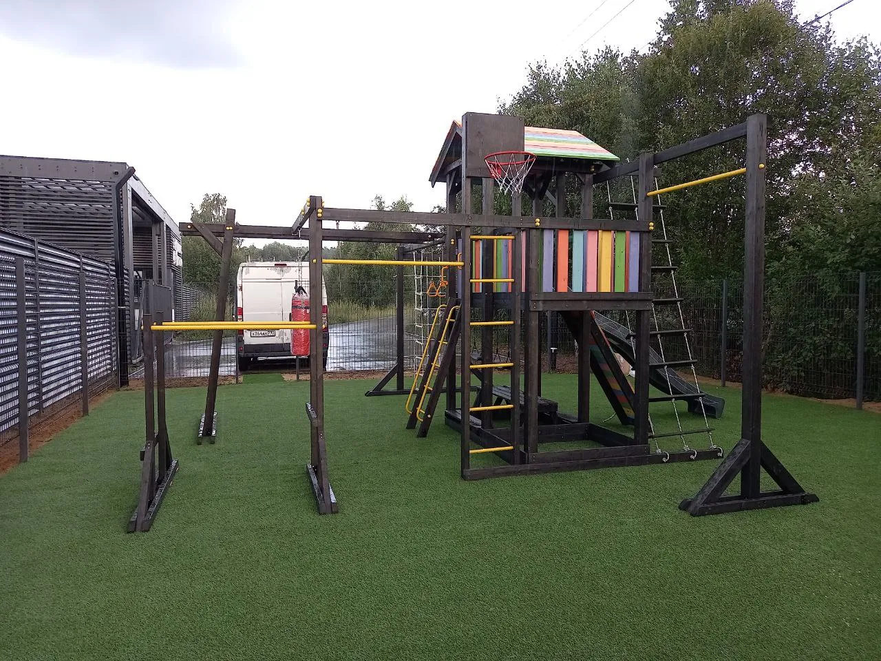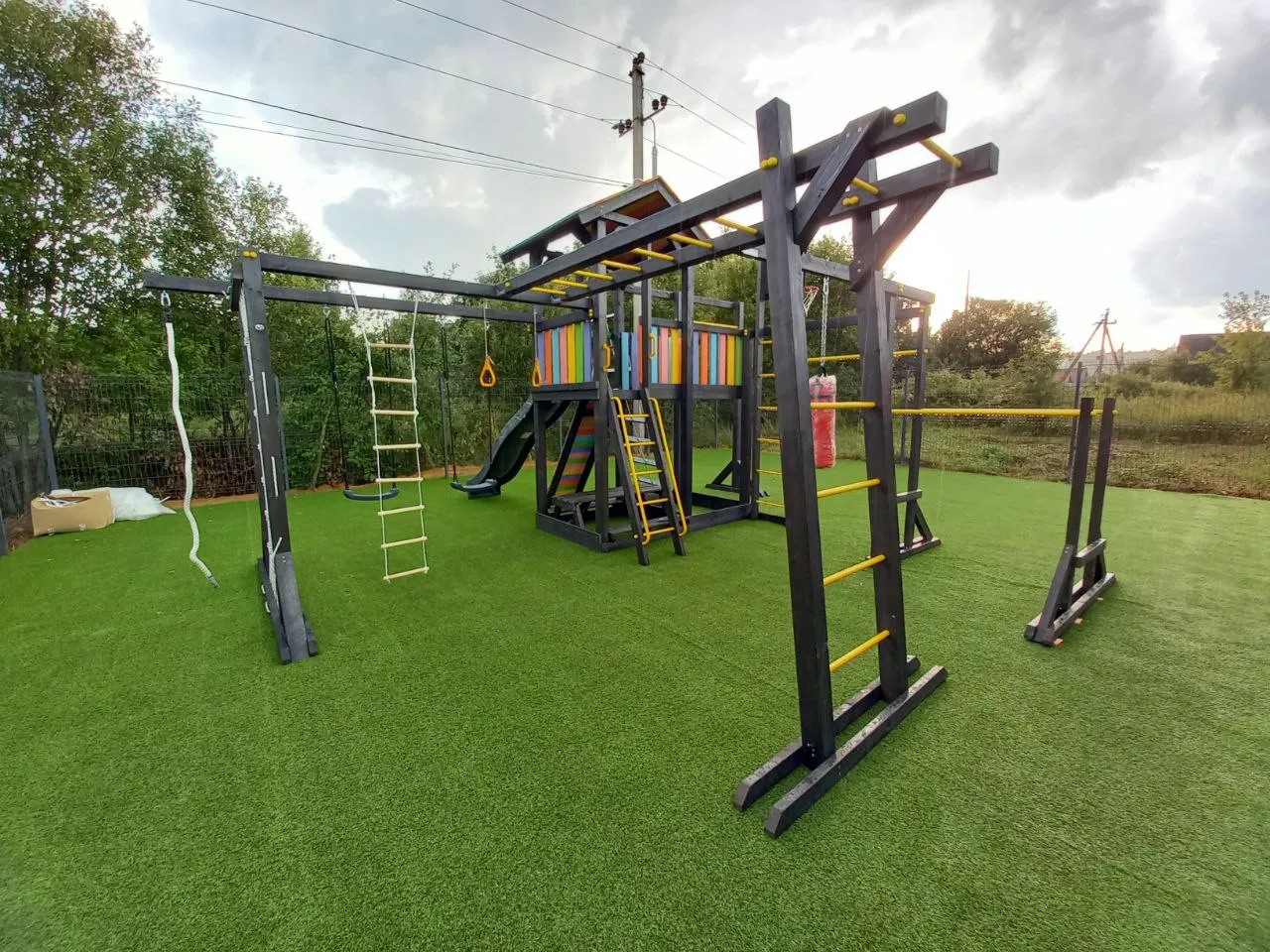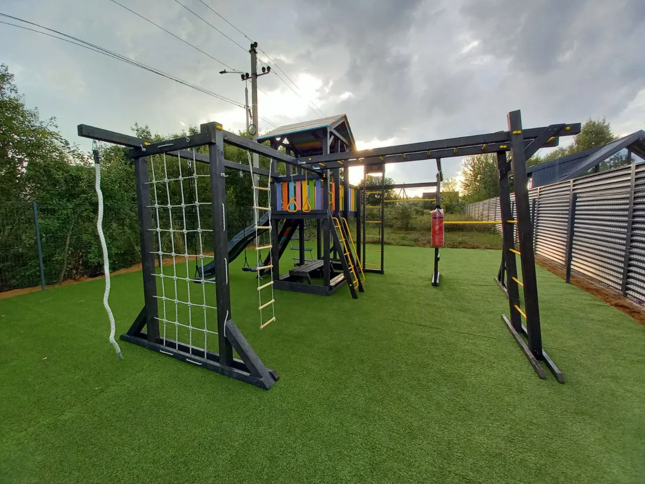 - Альпинистская стенка с пластиковыми выступами и канатом