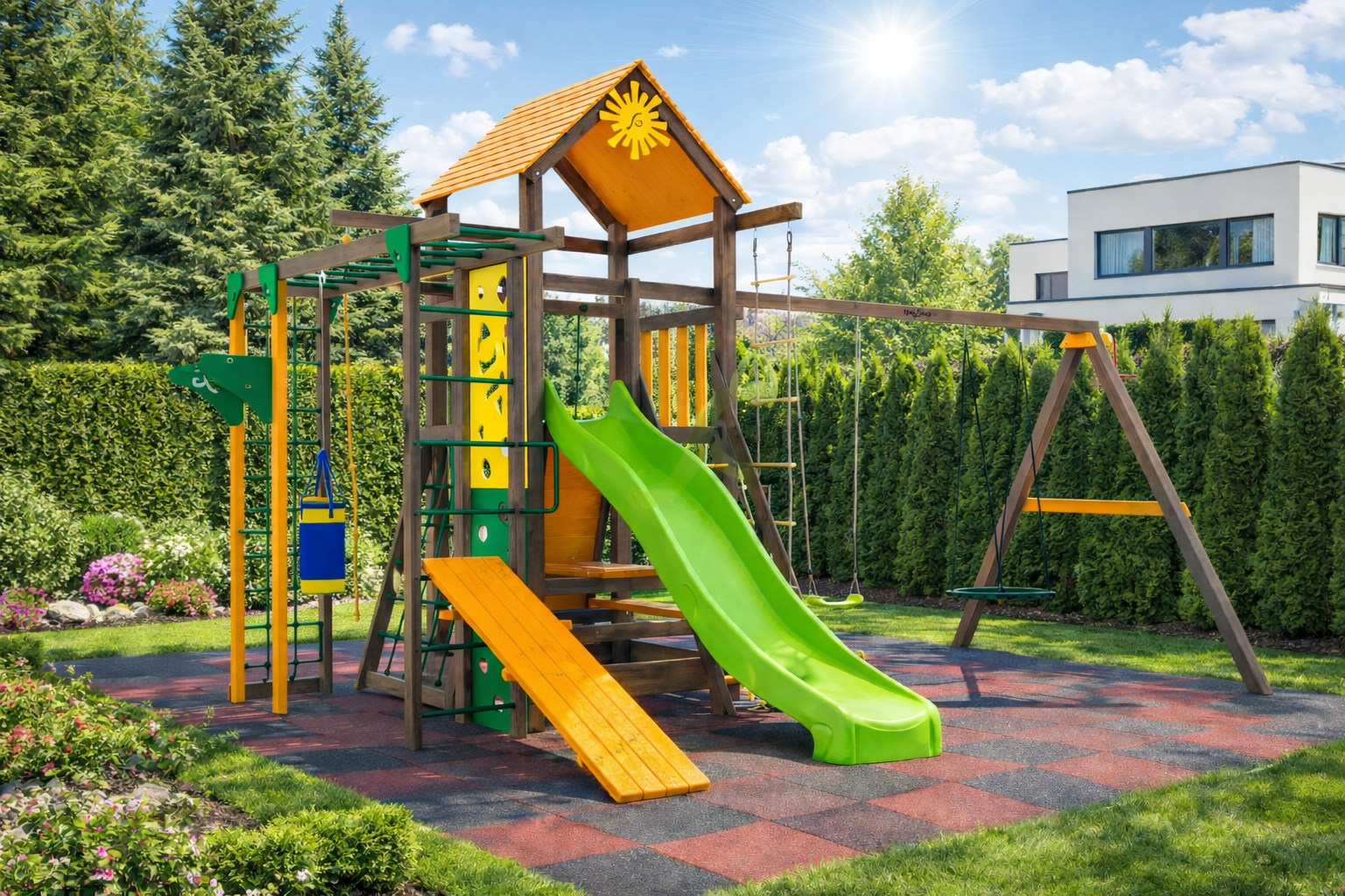 Обращаем Ваше внимание, что цвет установленной детской площадки может отличаться от представленных изображений на сайте. Специфика окраски нетоксичными пропитками допускает отклонения в цветовой гамме отгружаемых изделий вследствие различного цвета натурального природного сырья и естественных компонентов, используемых для производства площадок.