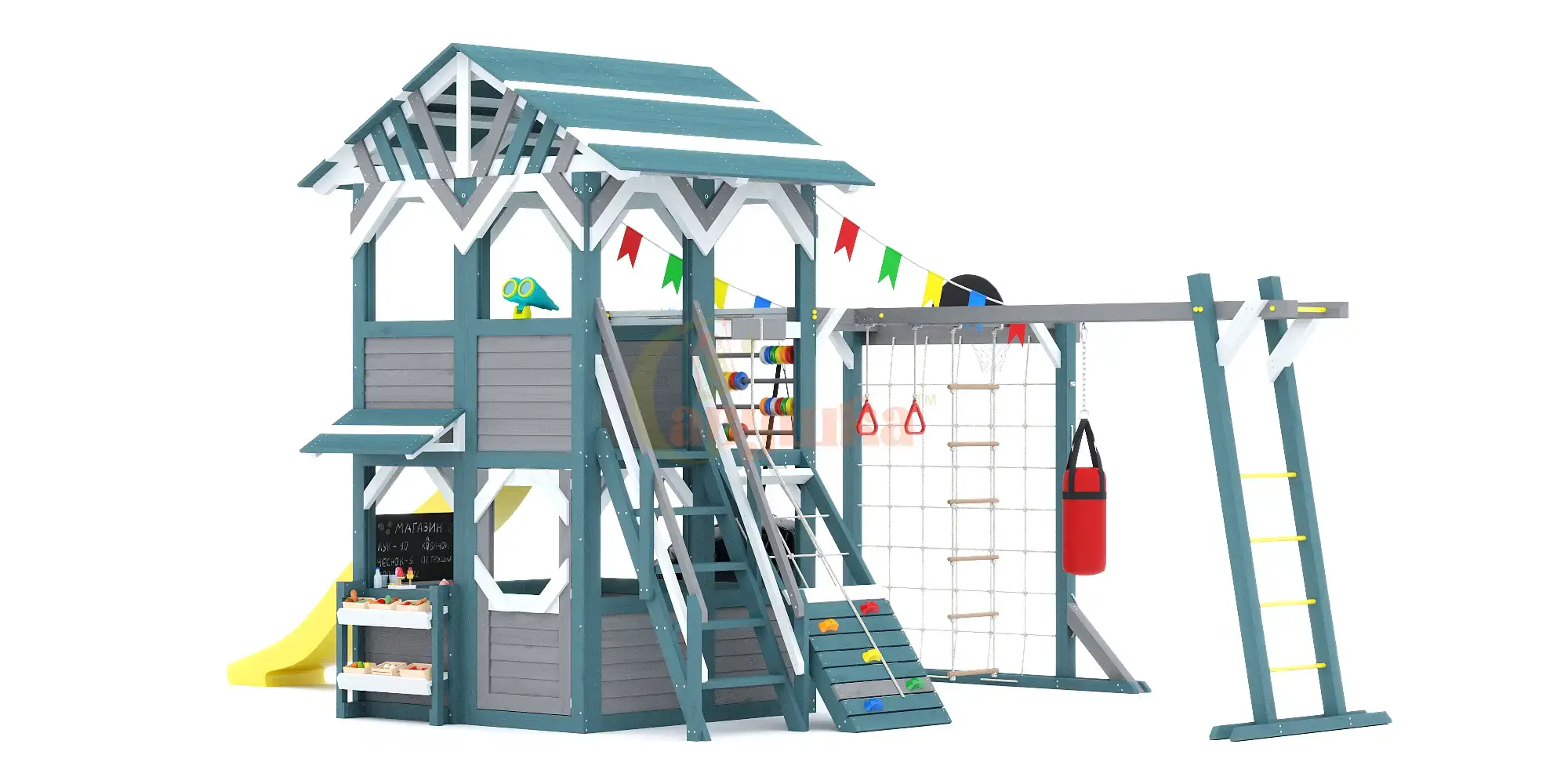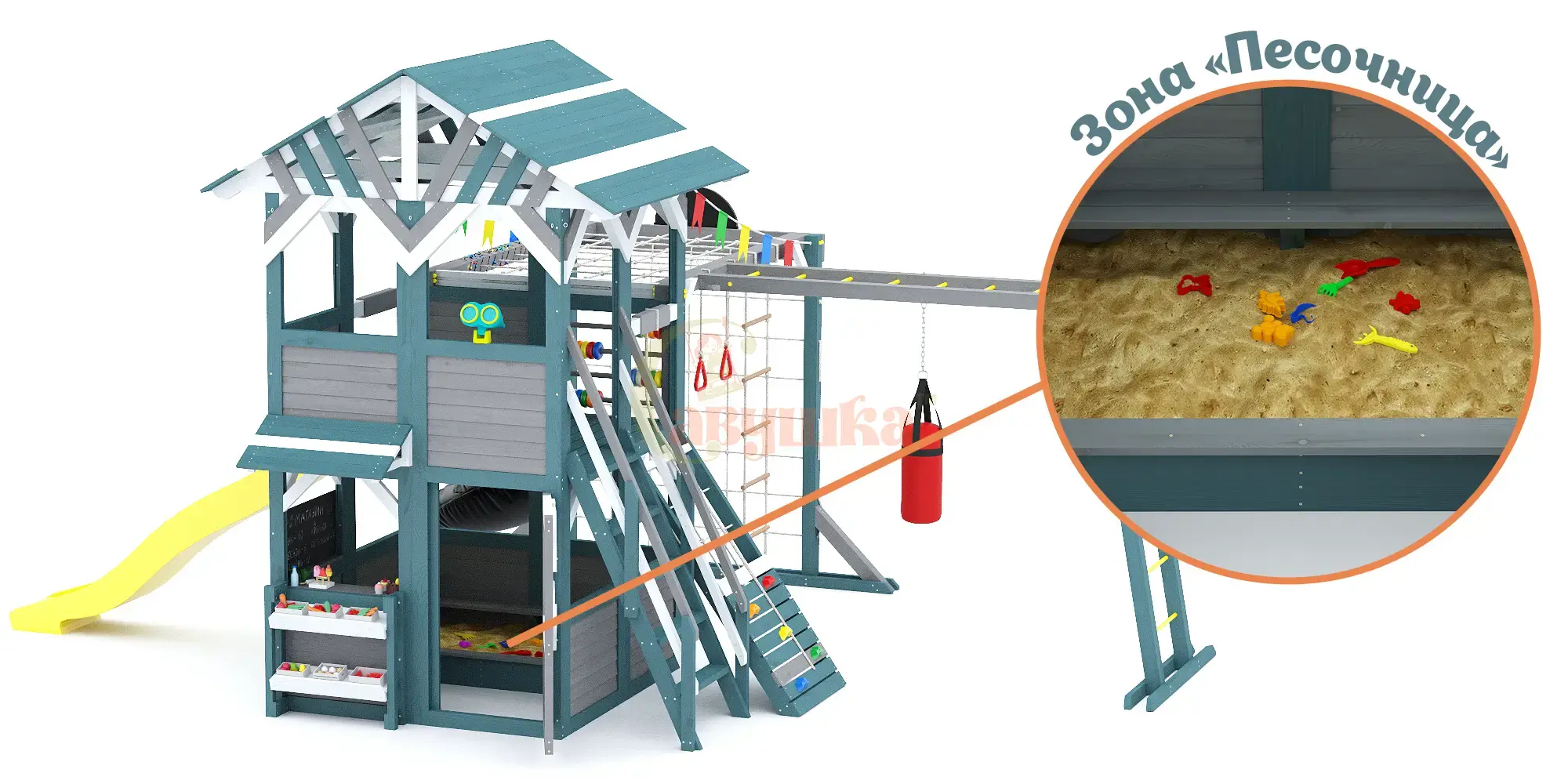 Обработка дерева: Лакокрасочным покрытием Sherwin-Williams (Шервин-Вильямс) с разрешающим сертификатом для покрытия детских игровых площадок