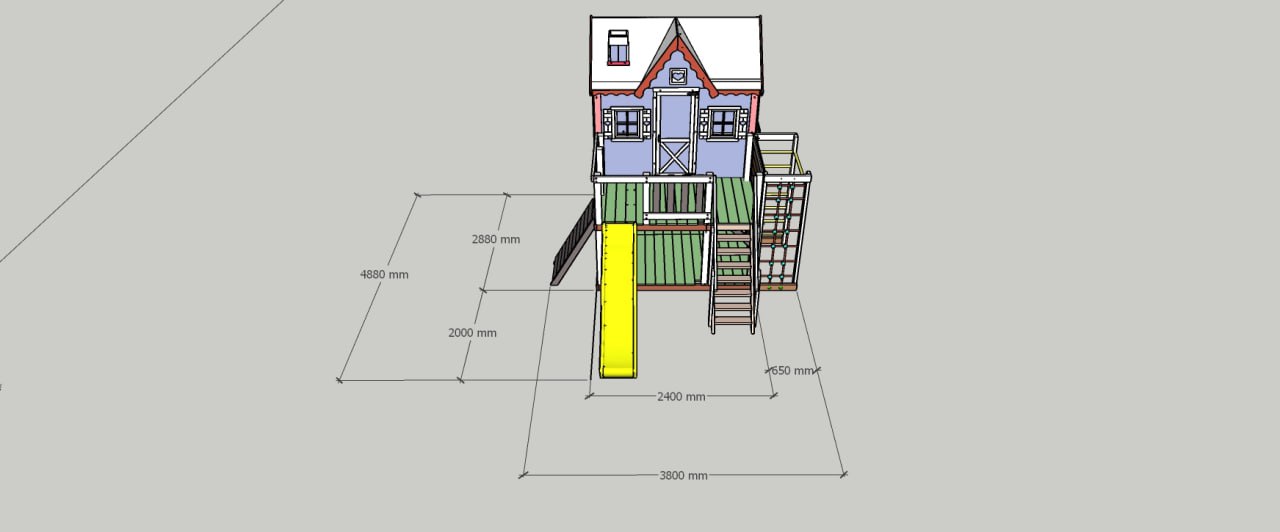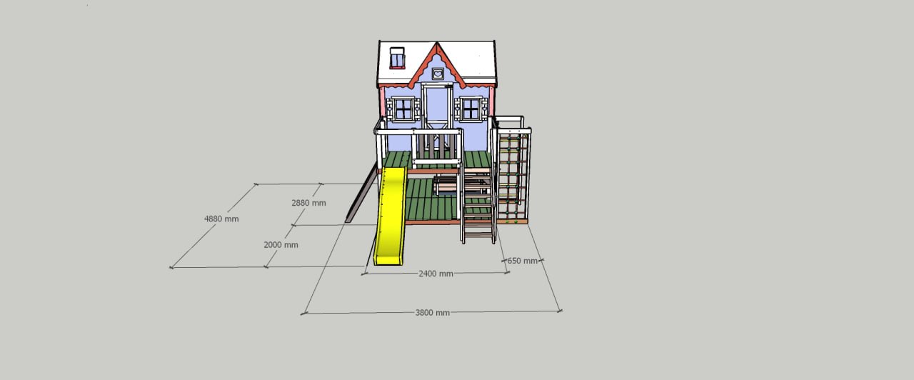 Общие размеры площадки: высота - 3,8 м; длина - 4,3 м; ширина - 6,1 м.