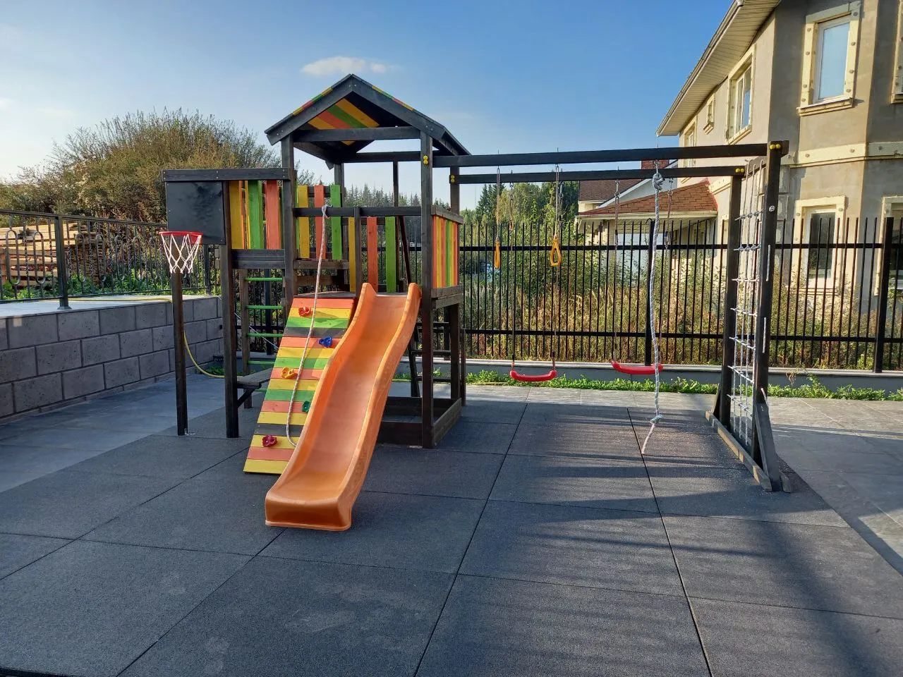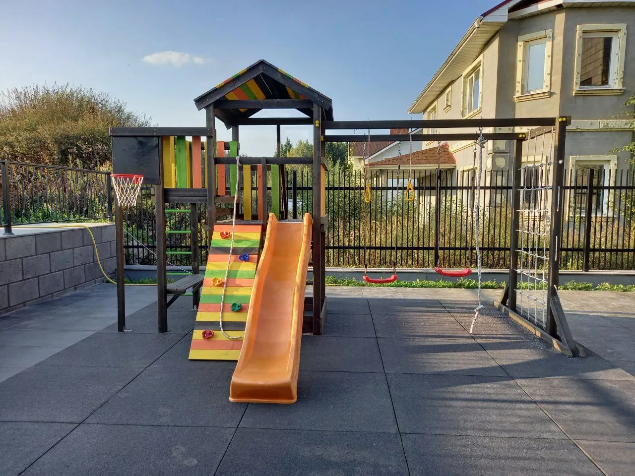 - Альпинистская стенка с пластиковыми выступами и канатом