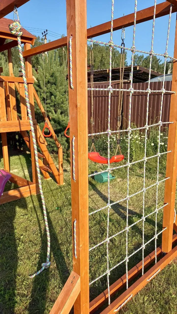 - Альпинистская стенка с пластиковыми выступами и канатом