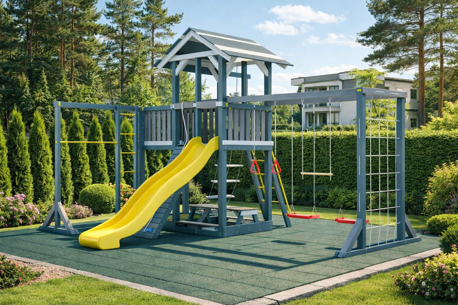 - Универсальность: подходит для детей разных возрастов, идеально вписывается в дачный ландшафт.