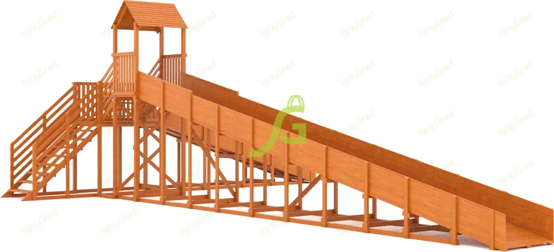 Характеристики зимней деревянной горки "Snow Fox 12 м" с двумя скатами мод.2