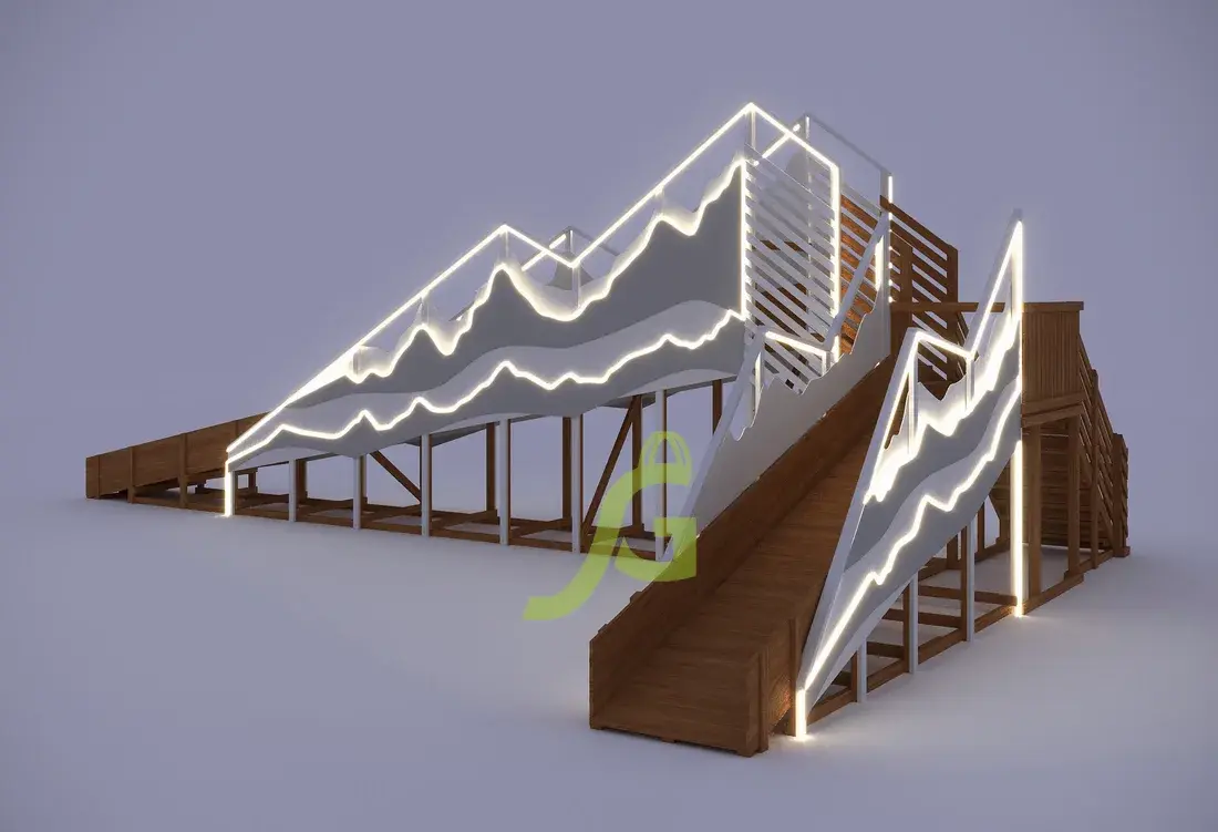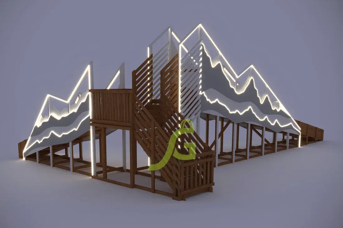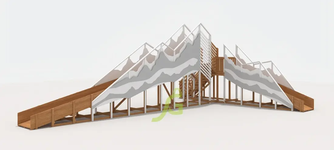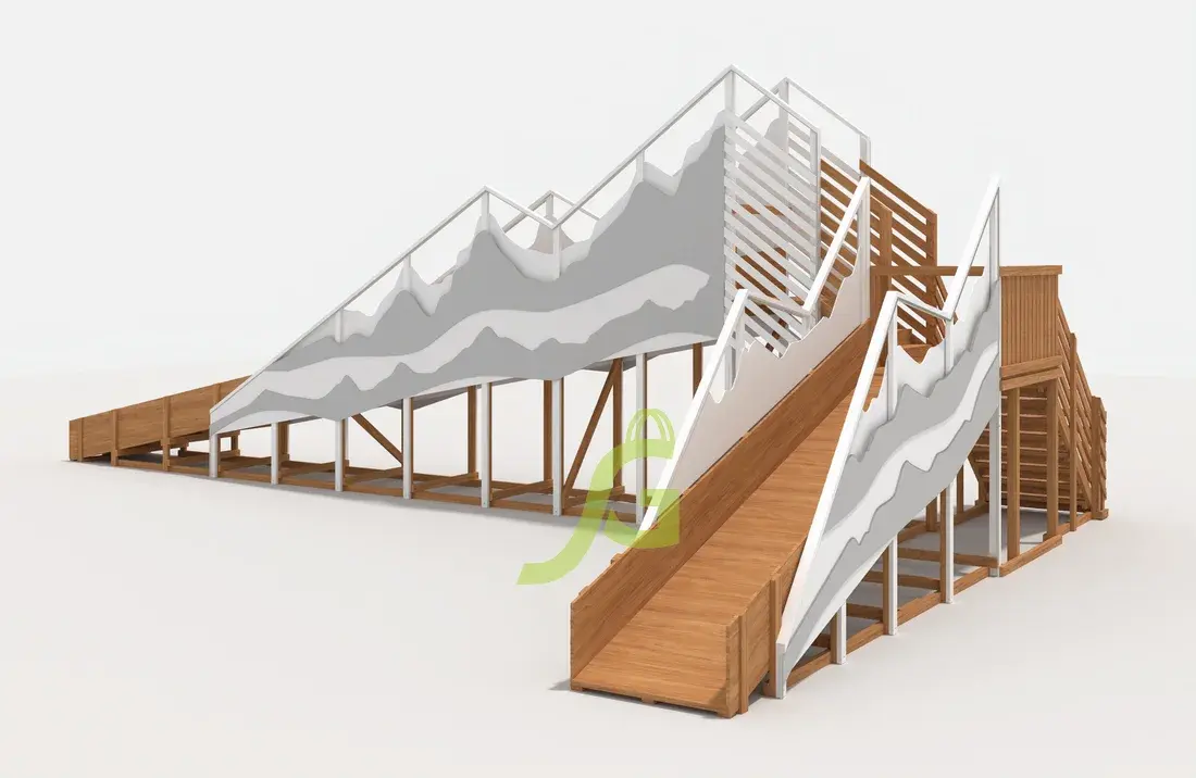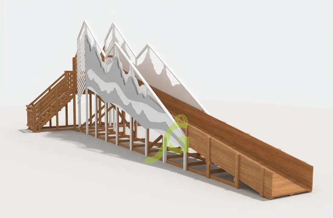 Характеристики зимней деревянной горки "Snow Fox 12 м" с двумя скатами мод.524