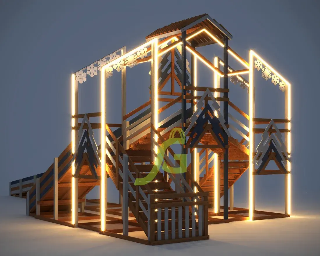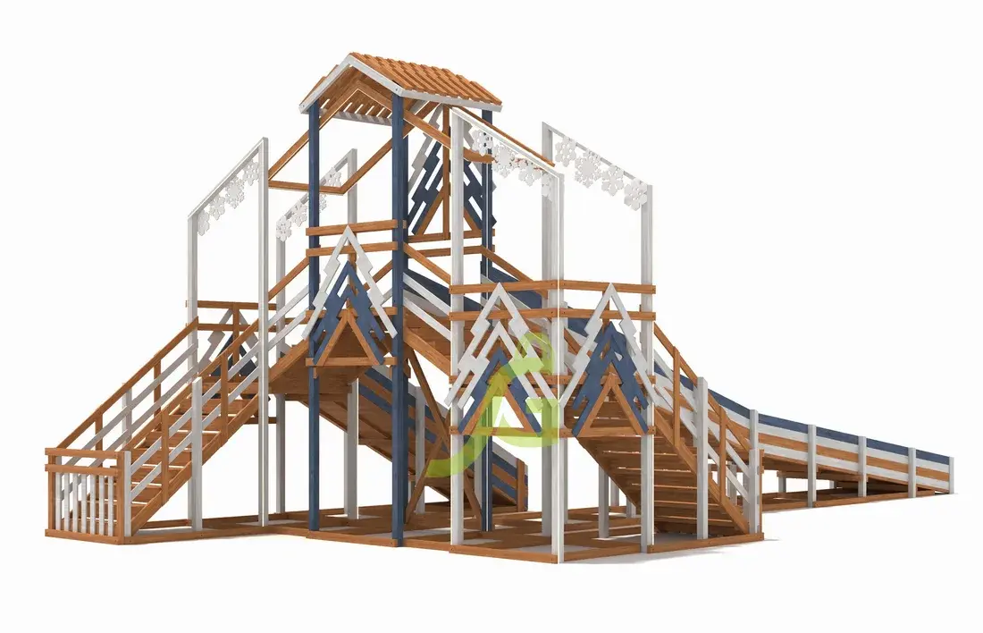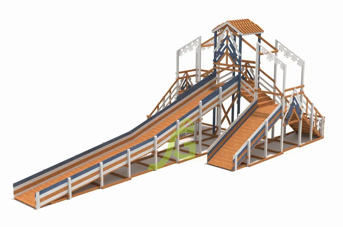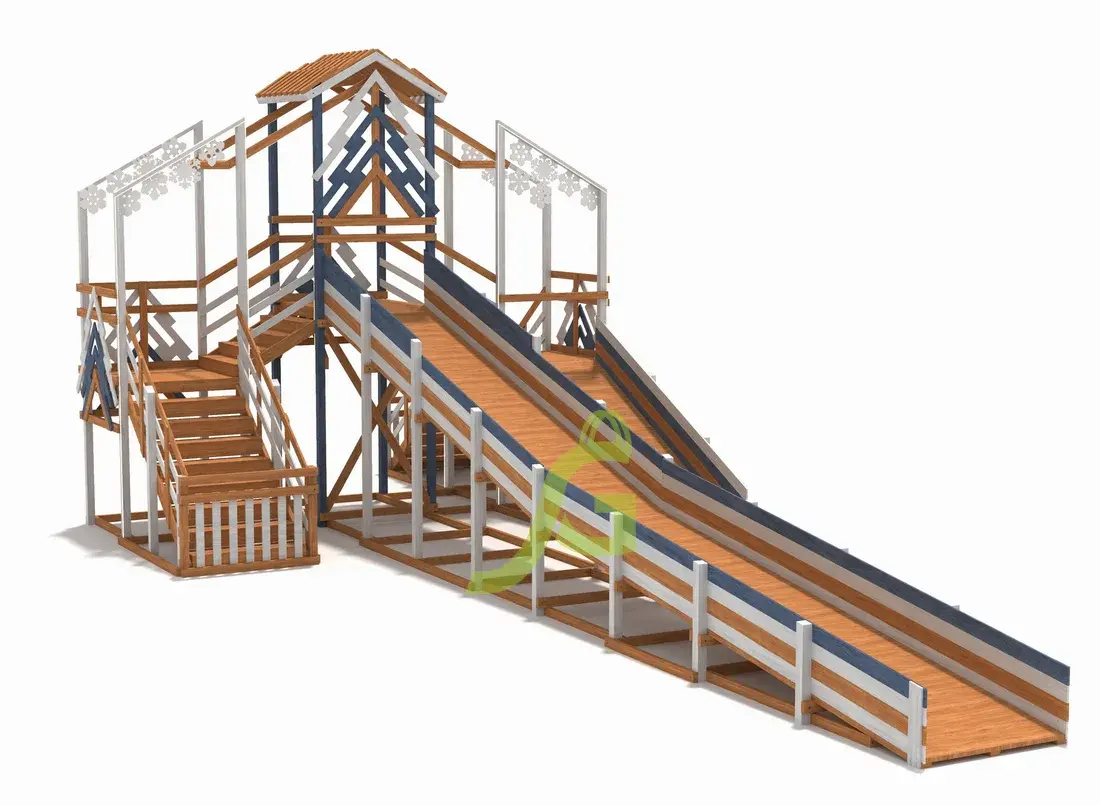 Характеристики зимней деревянной горки "Snow Fox 12 м" с двумя скатами