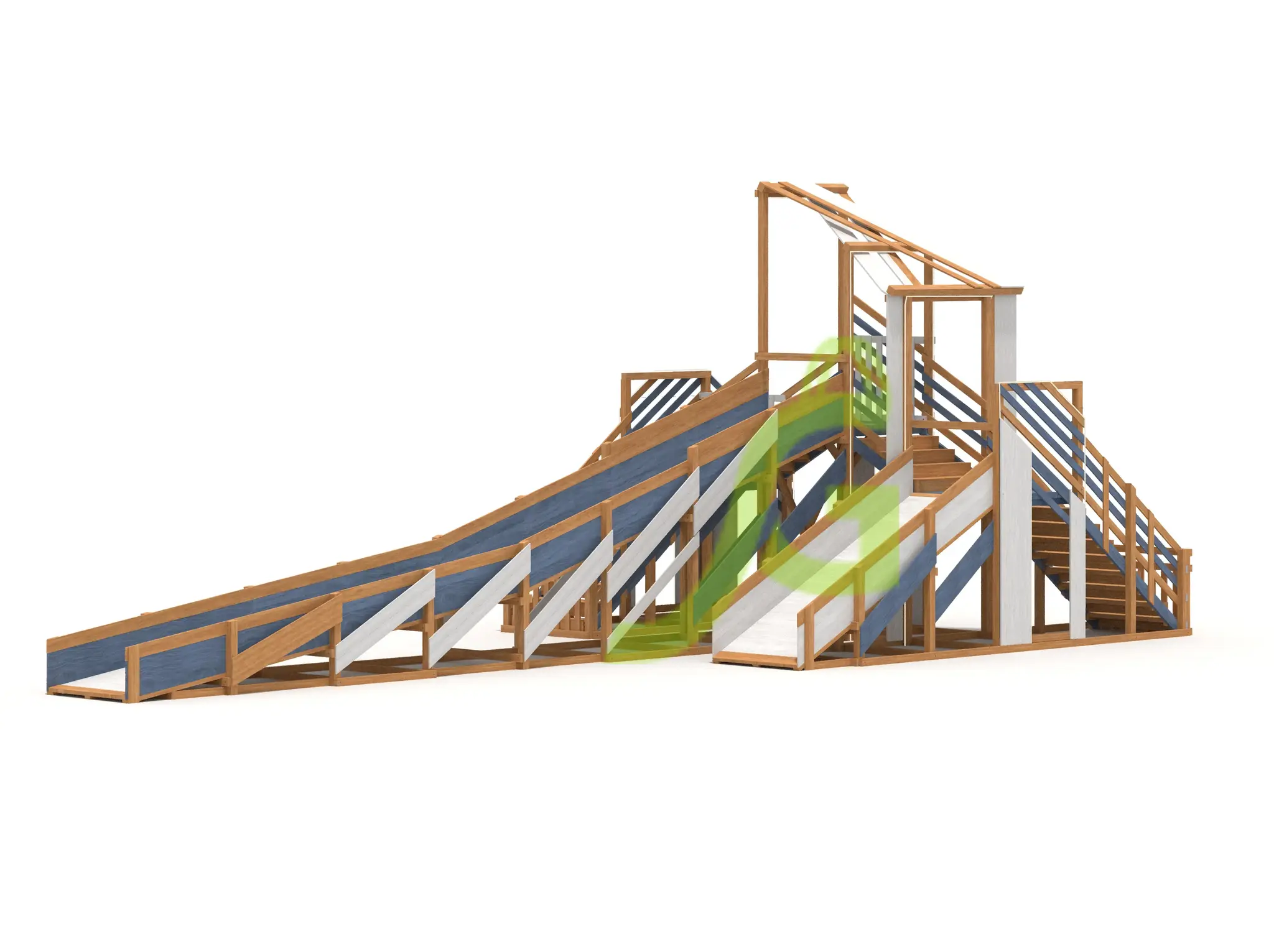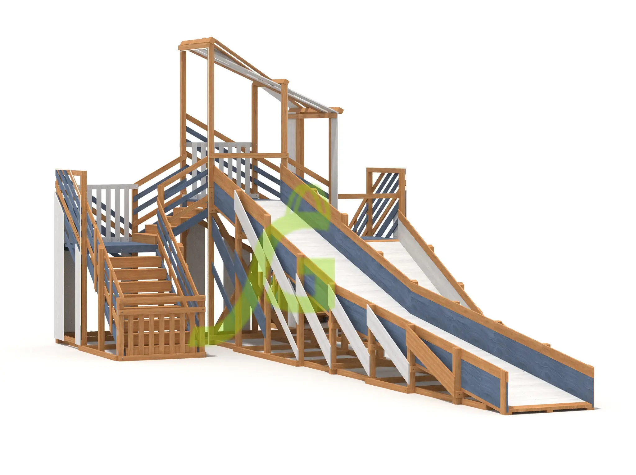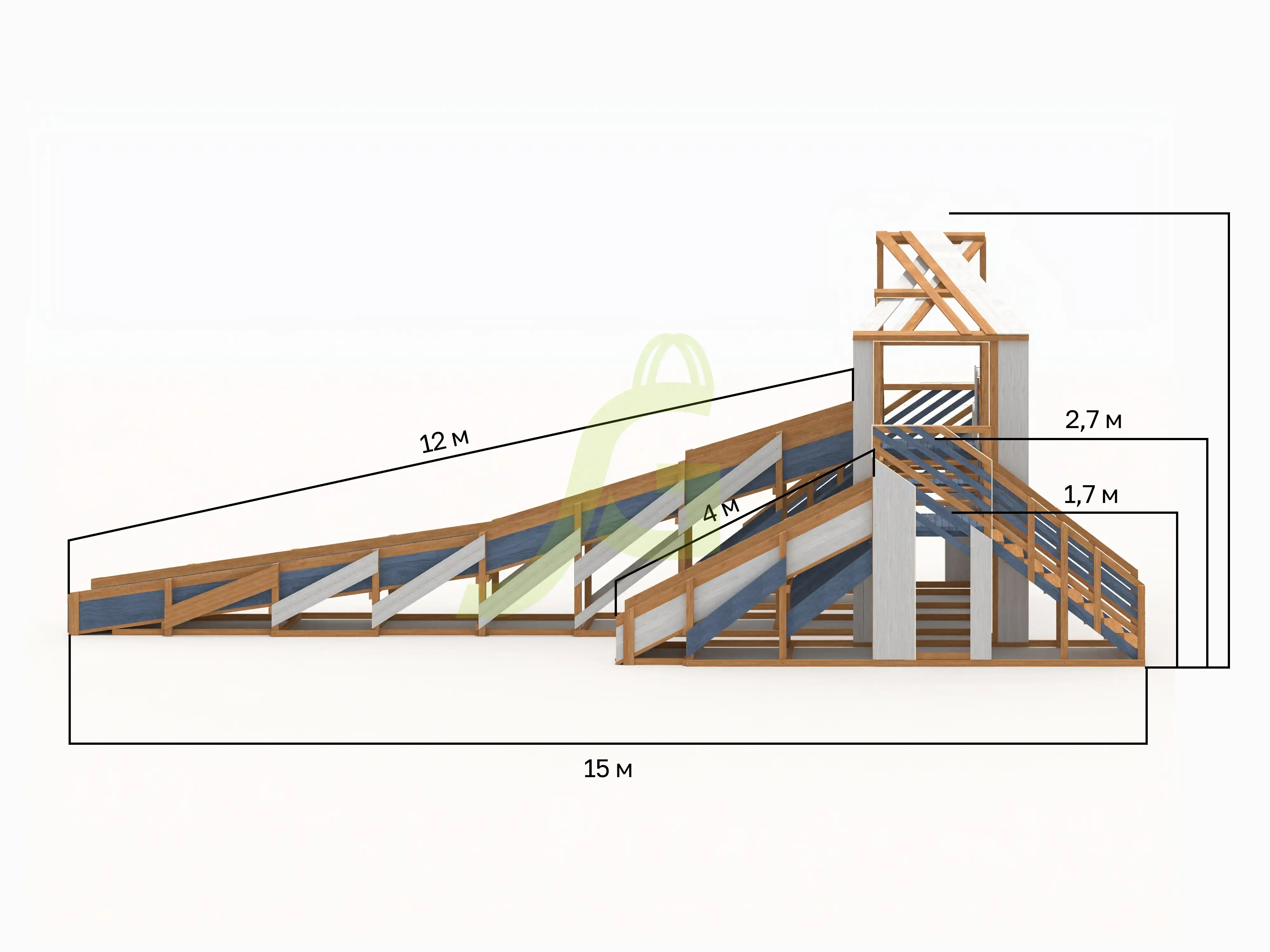 Характеристики зимней деревянной горки "Snow Fox 12 м" с двумя скатами мод.624