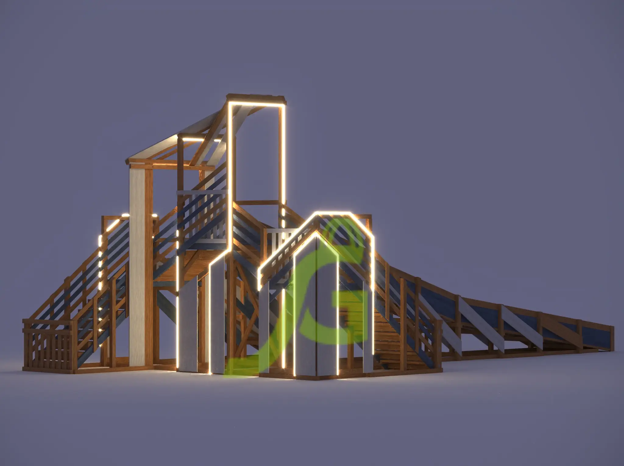 * Ограждение входа на горку, подсветка, подступеньки являются опцией и заказываются отдельно.