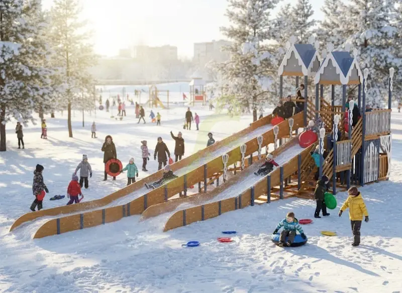 Важно - все зимние горки устанавливаются исключительно на ровных твердых поверхностях.