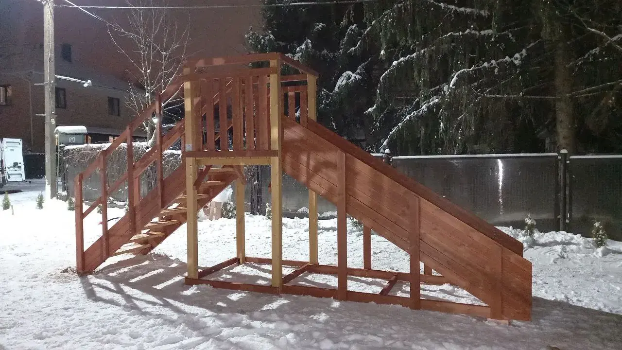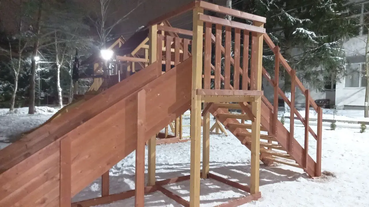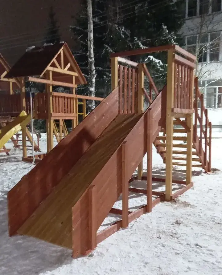 - Дерево обработано лакокрасочным покрытием с разрешающим сертификатом для покрытия детских игровых площадок