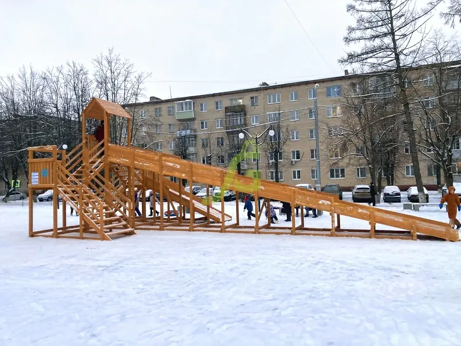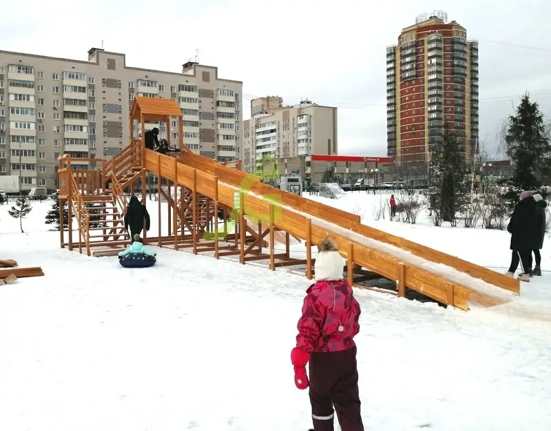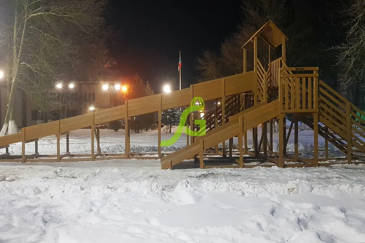 Характеристики зимней деревянной горки "Snow Fox 12 м" с двумя скатами