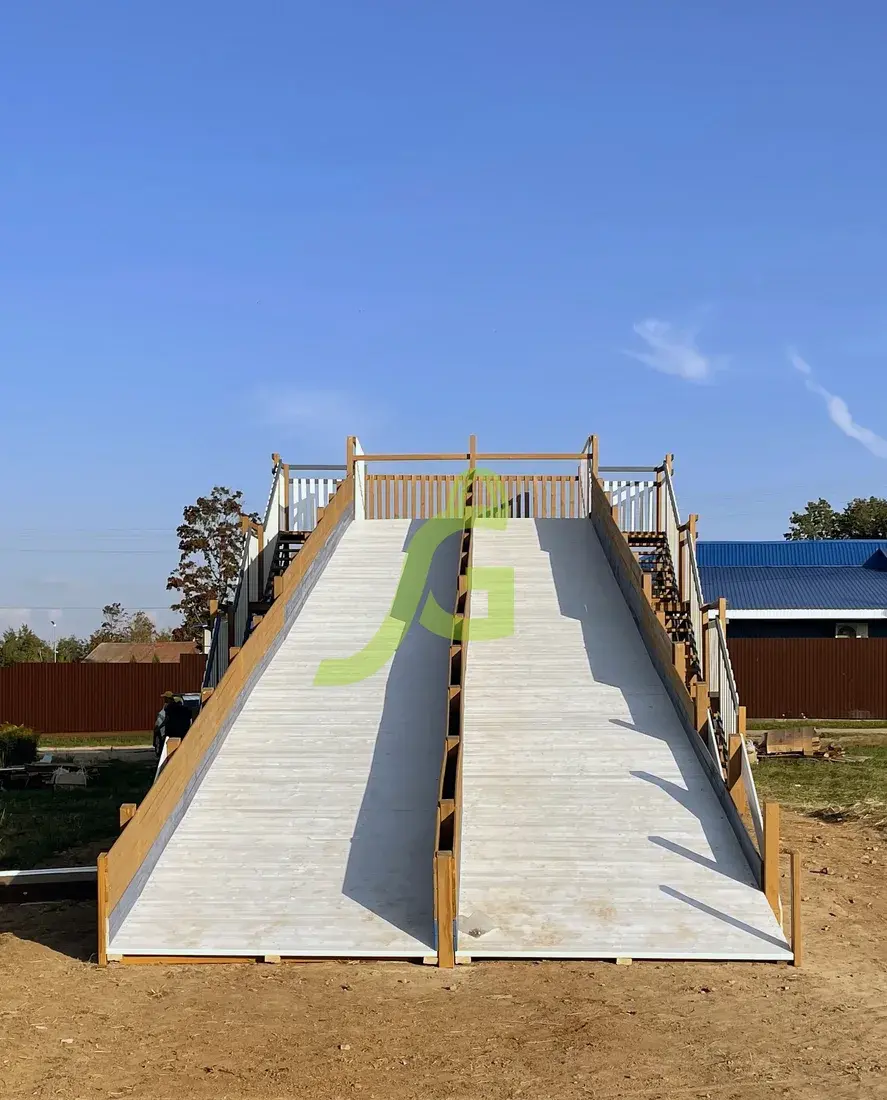 - - Двумя лестницами, которые располагаются параллельно горке.