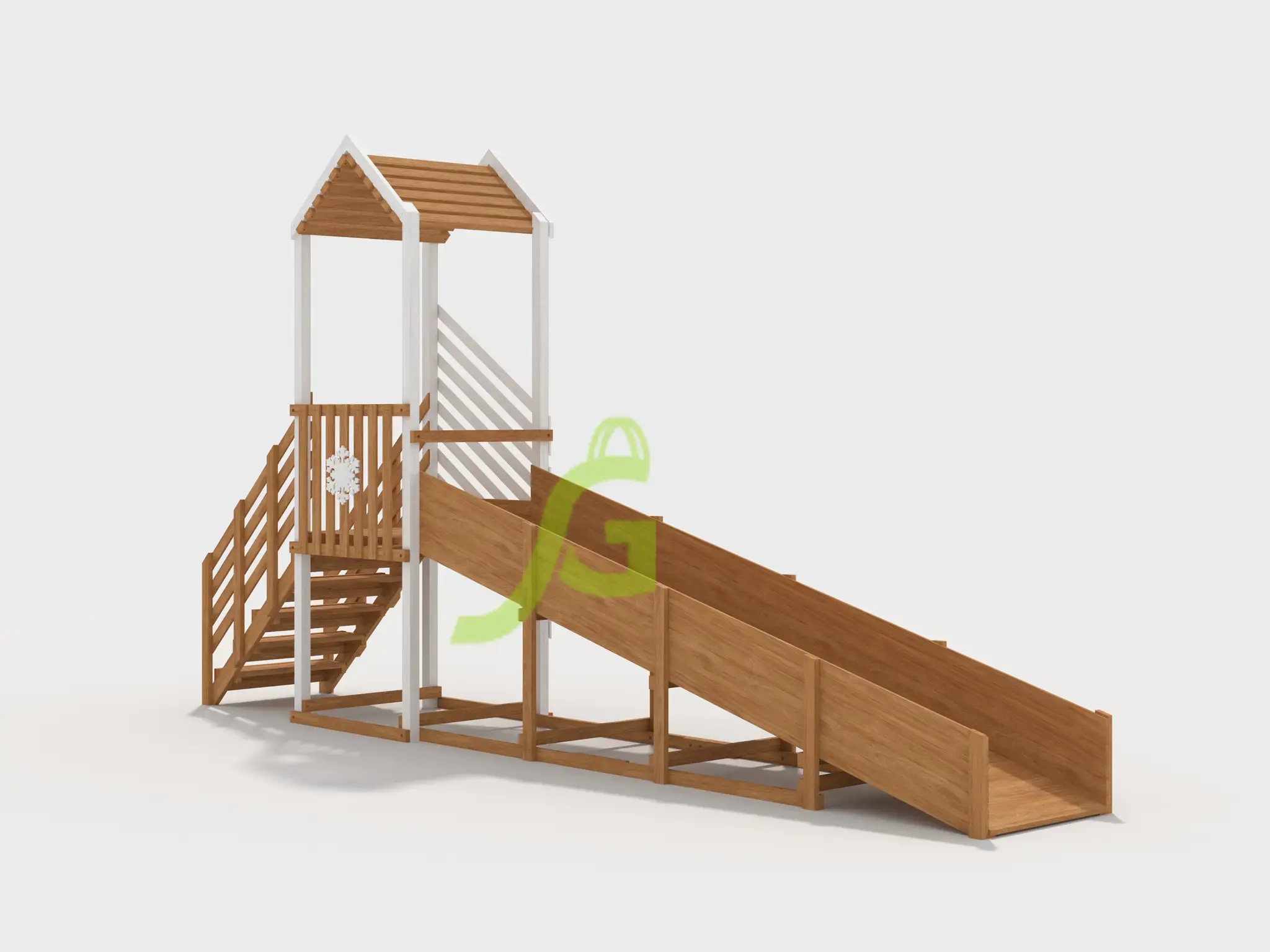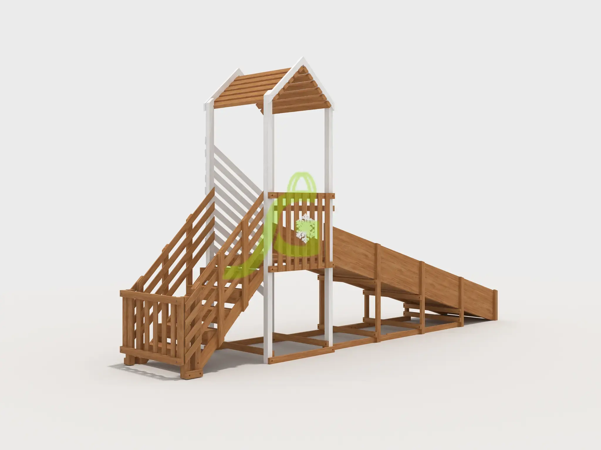 Прочность и безопасность: Горка спроектирована с учётом всех действующих нормативов. Конструкция изготовлена из бруса камерной сушки, что гарантирует долговечность и надежность в использовании.