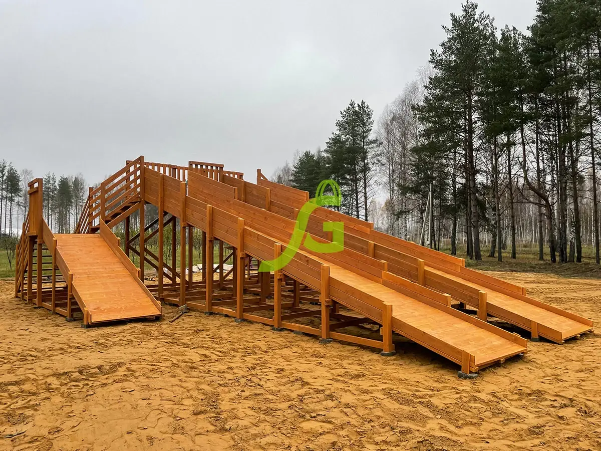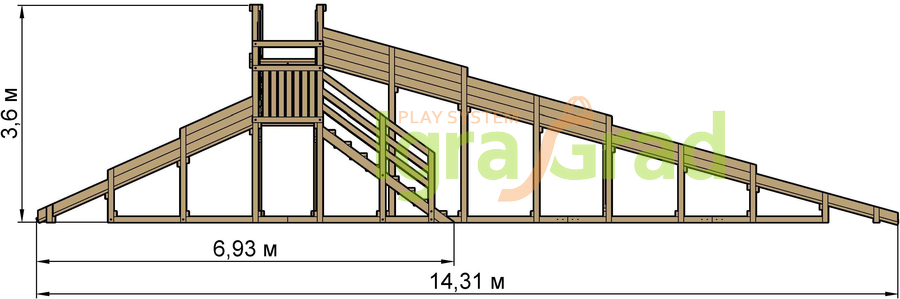 Габариты детской деревянной зимней горки Зимняя горка Snow Fox, 4 ската: